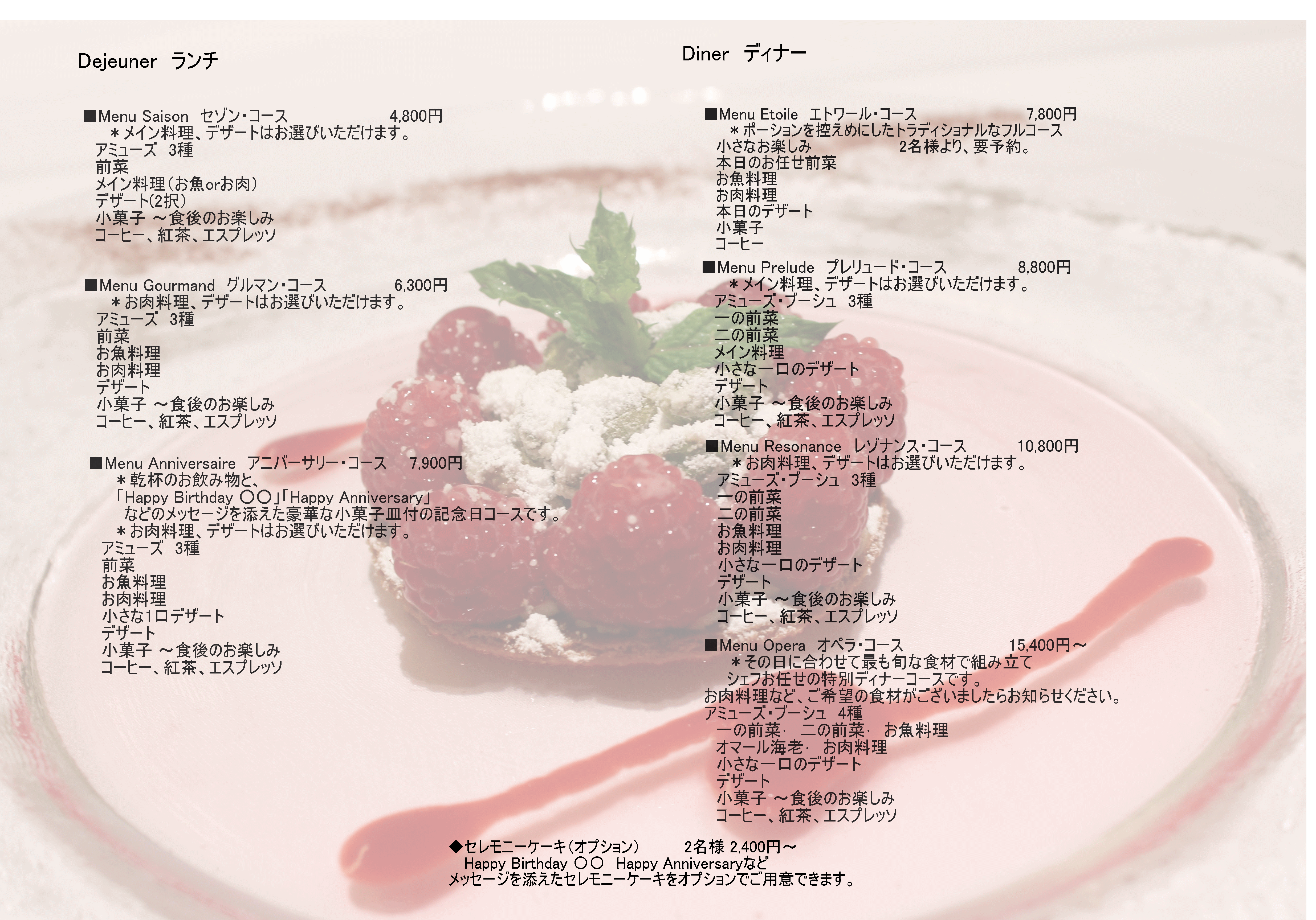 ■Menu Anniversaire アニバーサリー・コース 7,900円